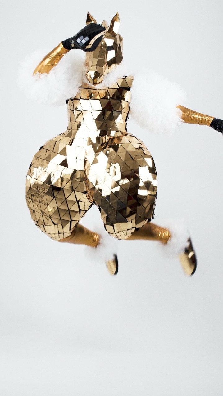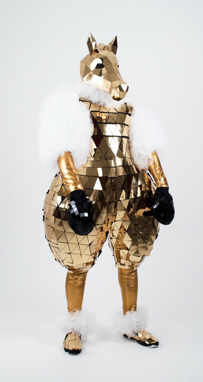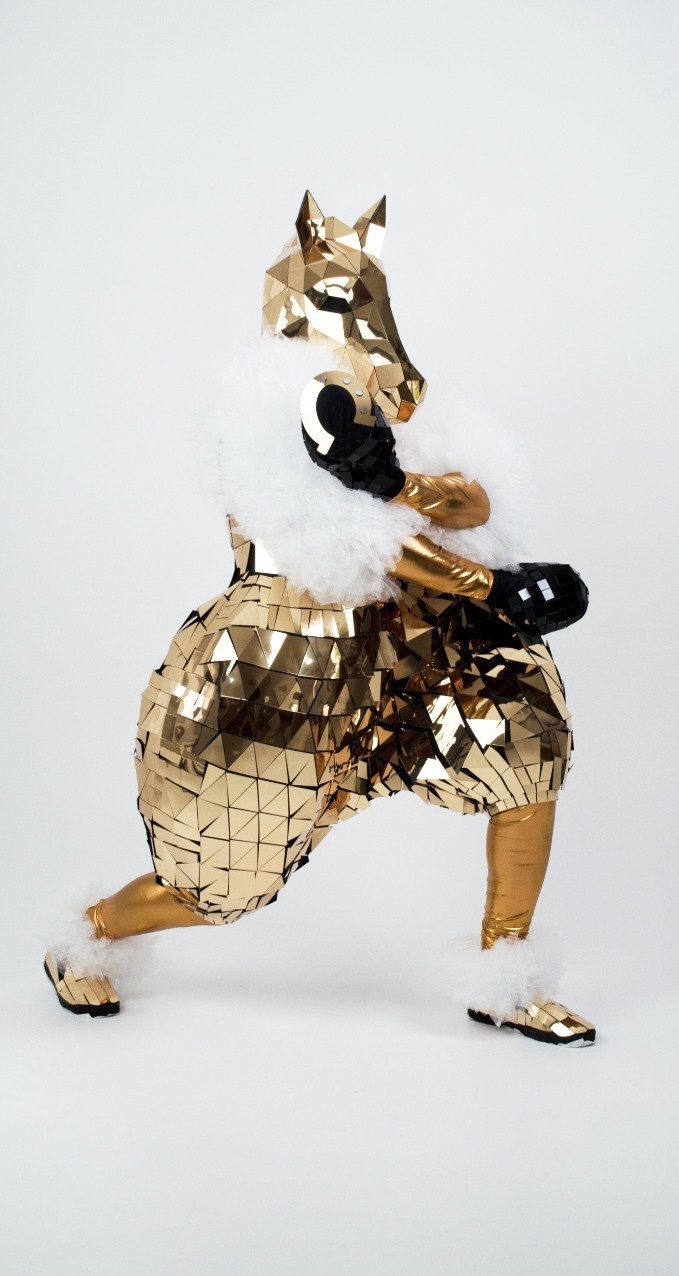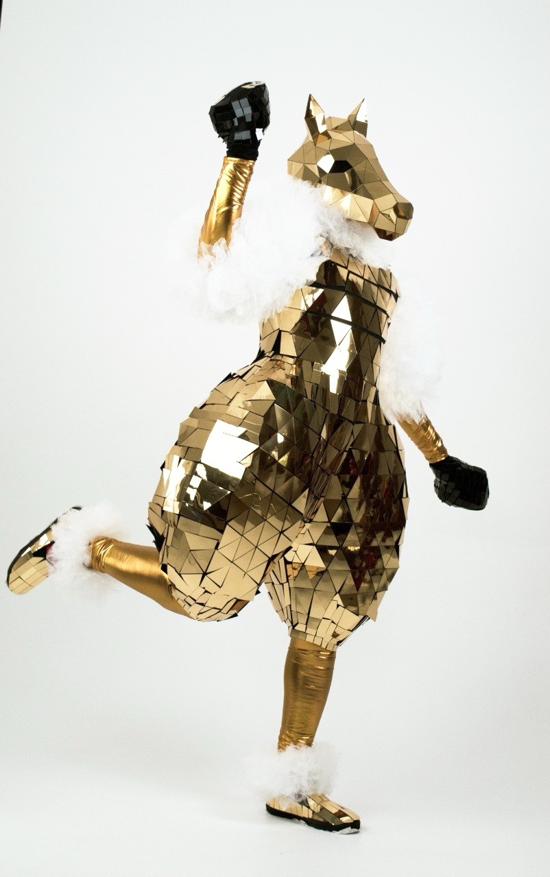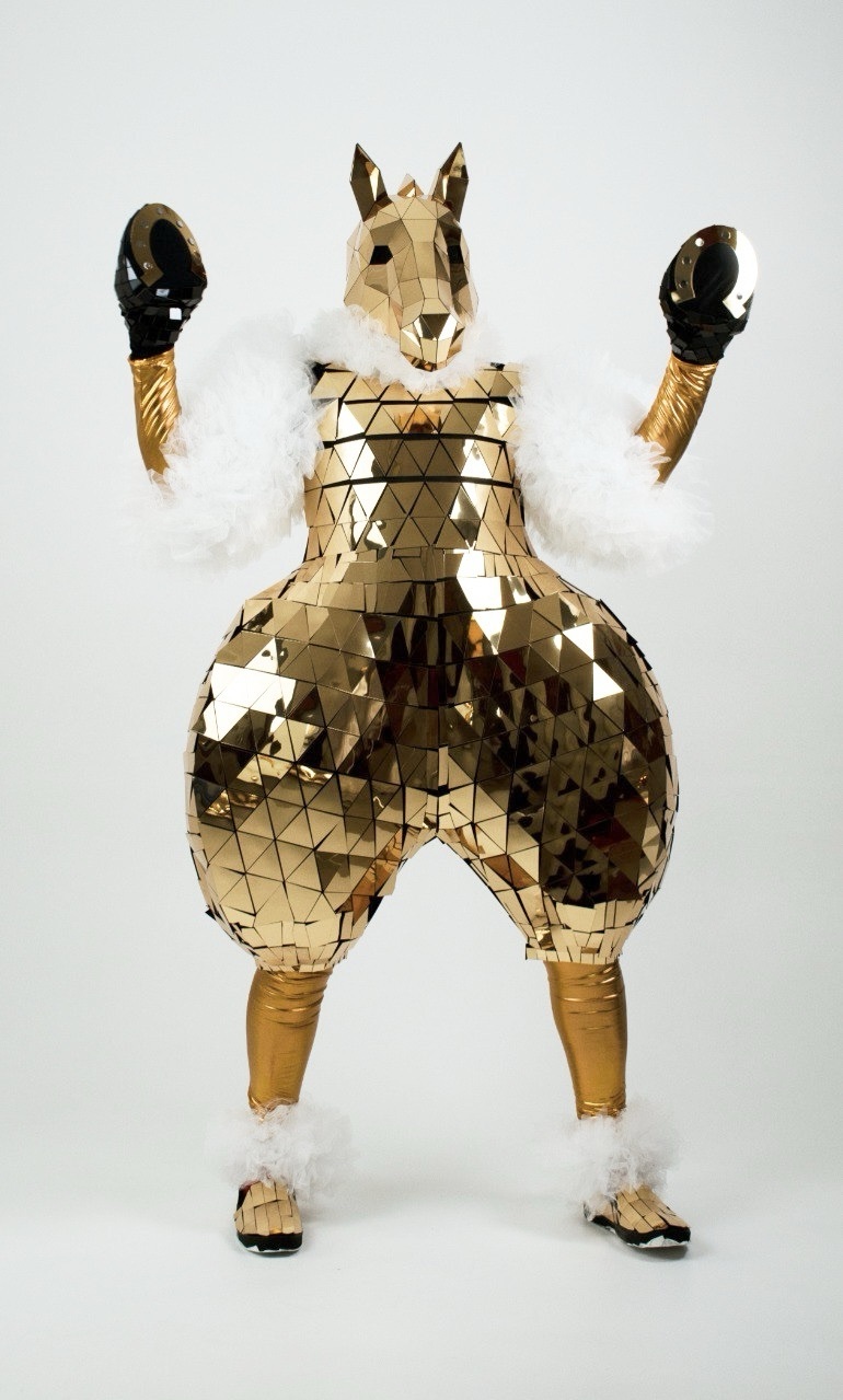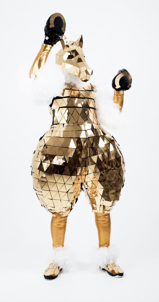 Зеркальный комбинезон с широкими бёдрами с маской коня золото