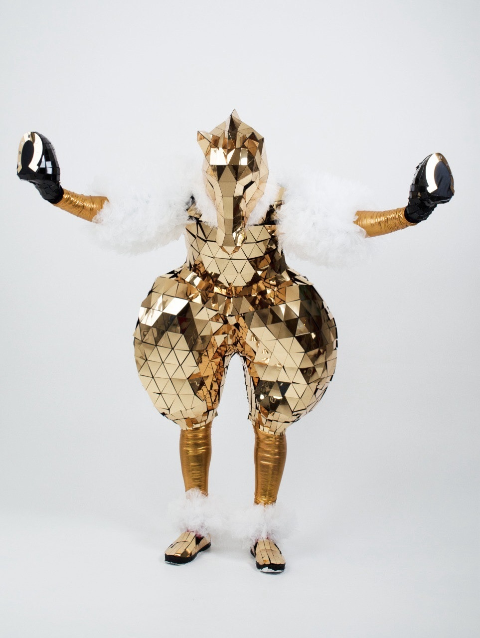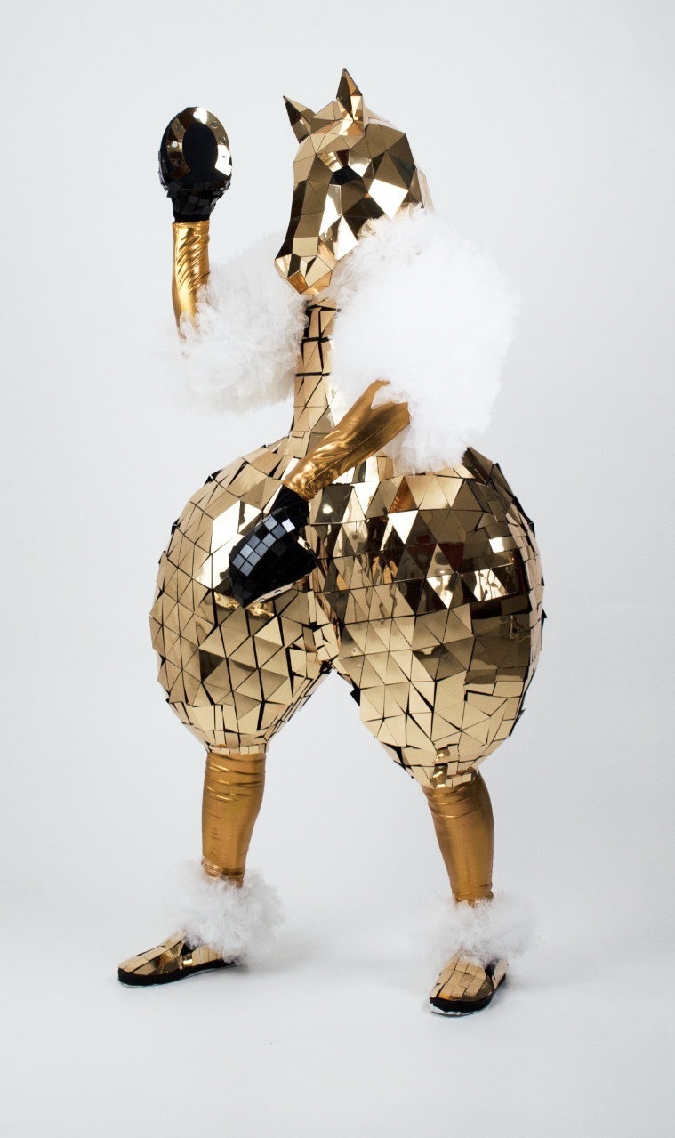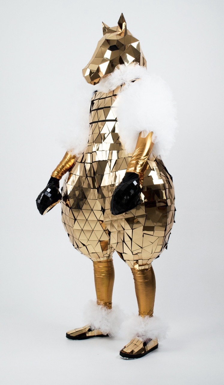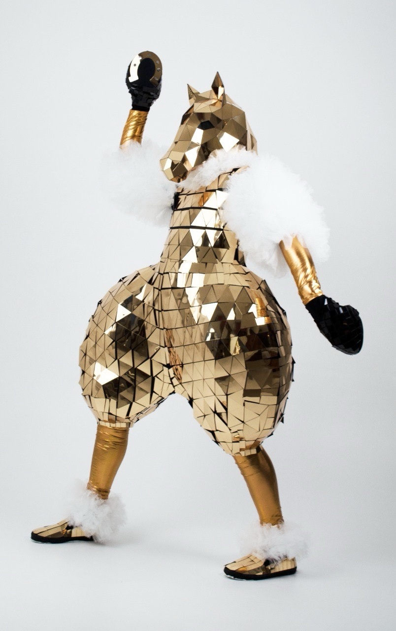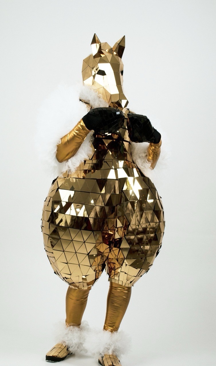 Зеркальный комбинезон с широкими бёдрами с маской коня золото